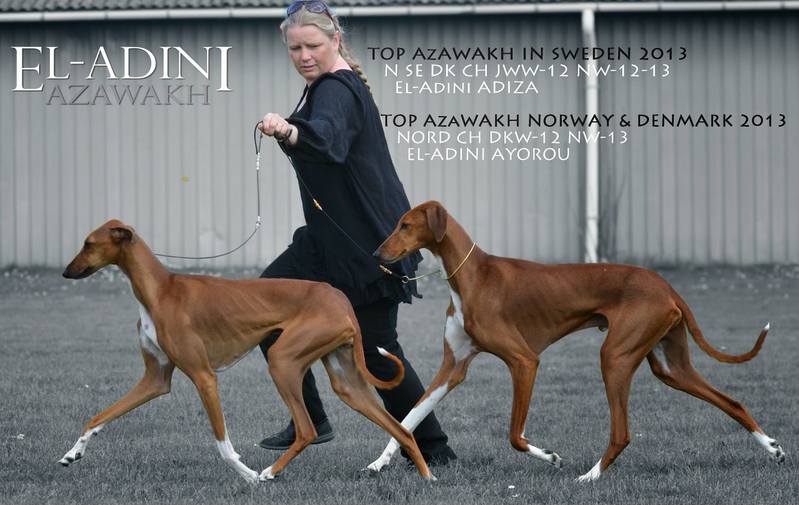 2013 has been a really great year! The El-Adini kids have developed nicely, and they are living great lives with their respective families. The El-Adini A-team has been very successful in the show-ring, 6 of them are already champions in several countries, and Akiki is International Champion. This year several of them have also achieved impressive results in finals. Ahadi won the group at Sintra Int, Ayorou was runner-up in the group at the biggest show in Norway, and Akiki won the unofficial Azawakh-show in Sweden…